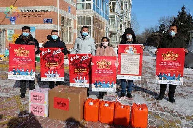 哈尔滨新区物业管理协会在疫情防控期间,为松北区政府和松北区物业企业之间搭建了十分重要的桥梁纽带作用,及时把物业企业在防疫期间遇到的困难反馈给政府,在区政府各级领导和物业同仁企业的大力支持下,为新区物协调拨了口罩、消毒液等急需的防疫物资。