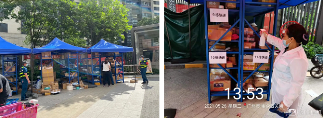 在社区门口搭建临时快递存放点