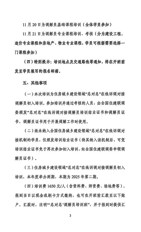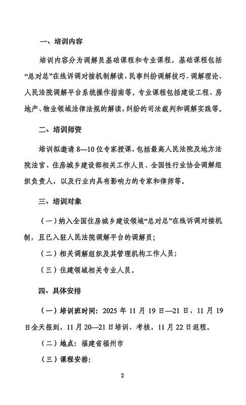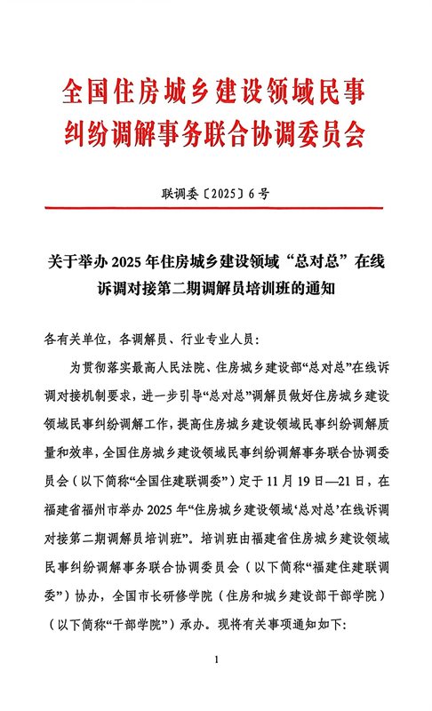 关于举办2025年住房城乡建设领域“总对总”在线诉调对接第二期调解员培训班的通知