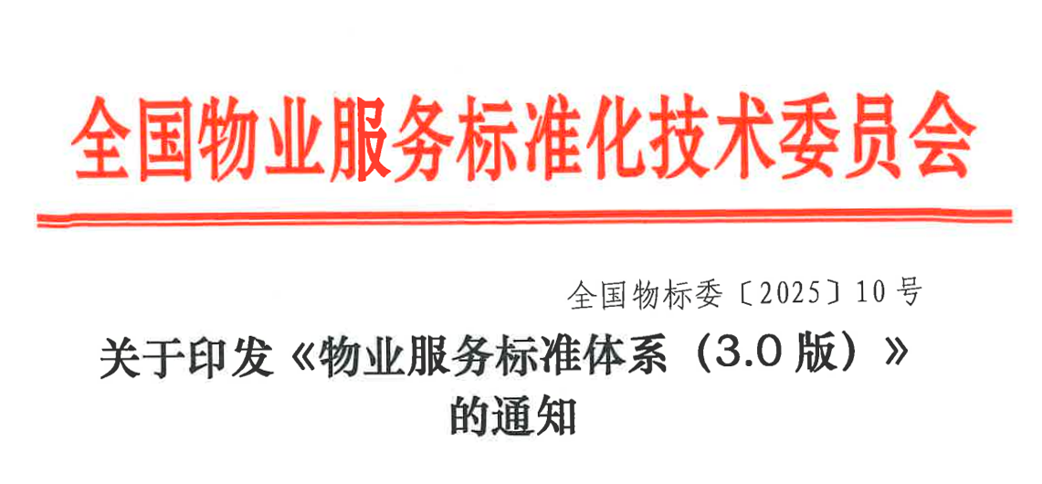 《物业服务标准体系(3.0版)》经全国物业服务标准化技术委员会第二届第二次全体委员会议审议通过,现向全体委员印发。