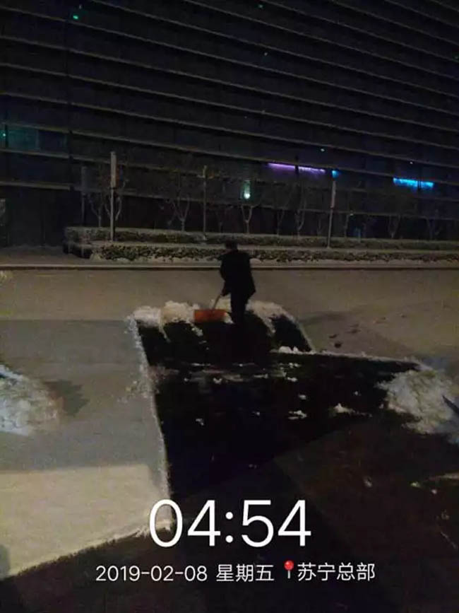 深夜,大雪如约而至,洋洋洒洒间瞬间白了金陵城大街小巷。当大家伴着美景入梦的同时,苏宁银河物业人各项目为营,化身城市守护者,分布在项目岗亭出入口、园区干道、业主单元门口、车库等“雪战”重地,重复清扫,力战至清晨惊艳到业主的一条条暖心的出行路和无数业主点赞。