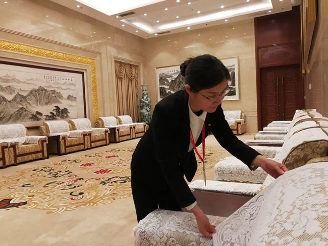 敢于吃苦、甘于奉献是中海人的本质。12月6日,最为关键的一天,已连续工作18小时的中海物业人继续奋战,多频次现场保洁,检查场地用电、照明、音控等。