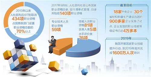 “减少取消职业资格许可和认定事项,解决了职业资格过多过滥问题,降低了就业创业门槛,激发了市场主体创造活力。”汤涛表示,把职业资格转为职业技能等级认定,将按照“放管服”改革要求,建立更加符合市场经济需要的技能人才评价制度。总体思路,就是准入类职业资格继续实行职业资格目录管理;水平评价类职业资格,将建立并推行职业技能等级制度。